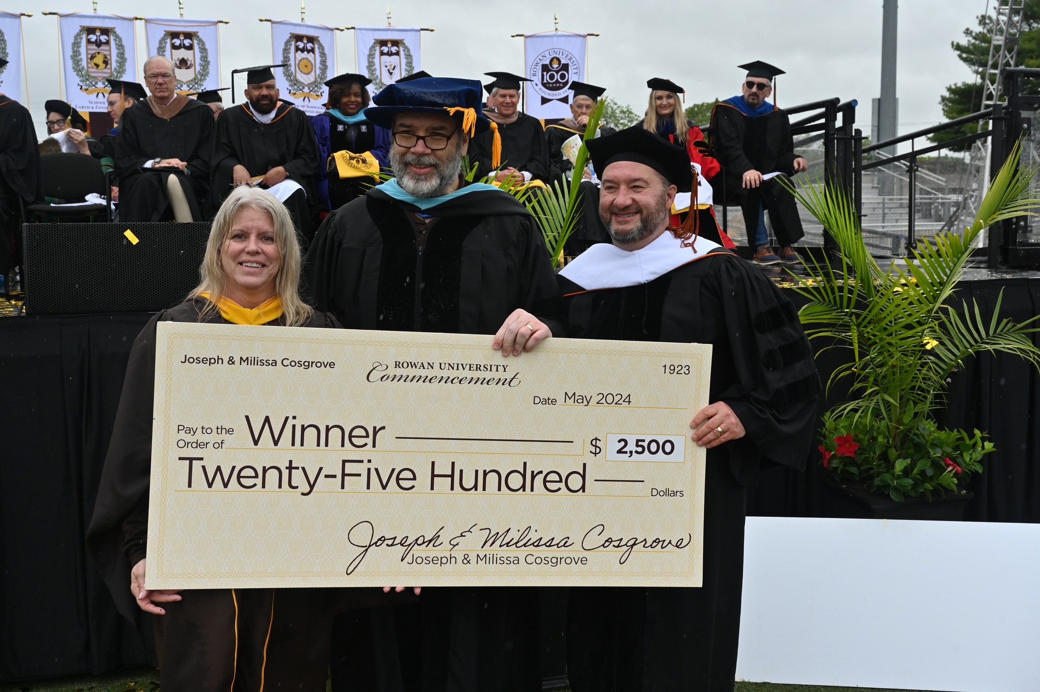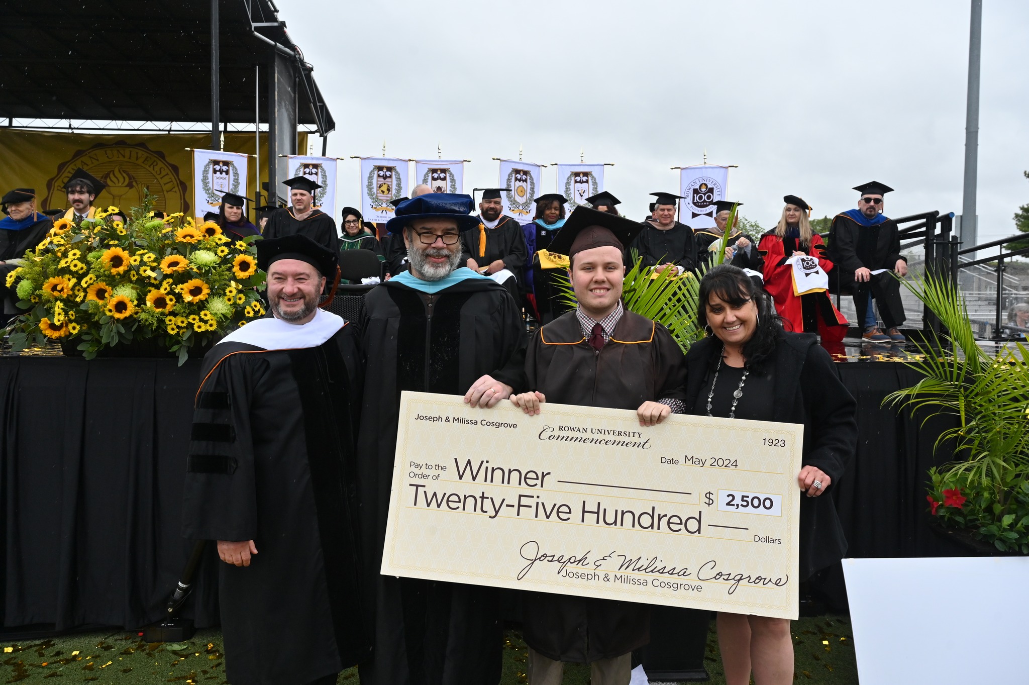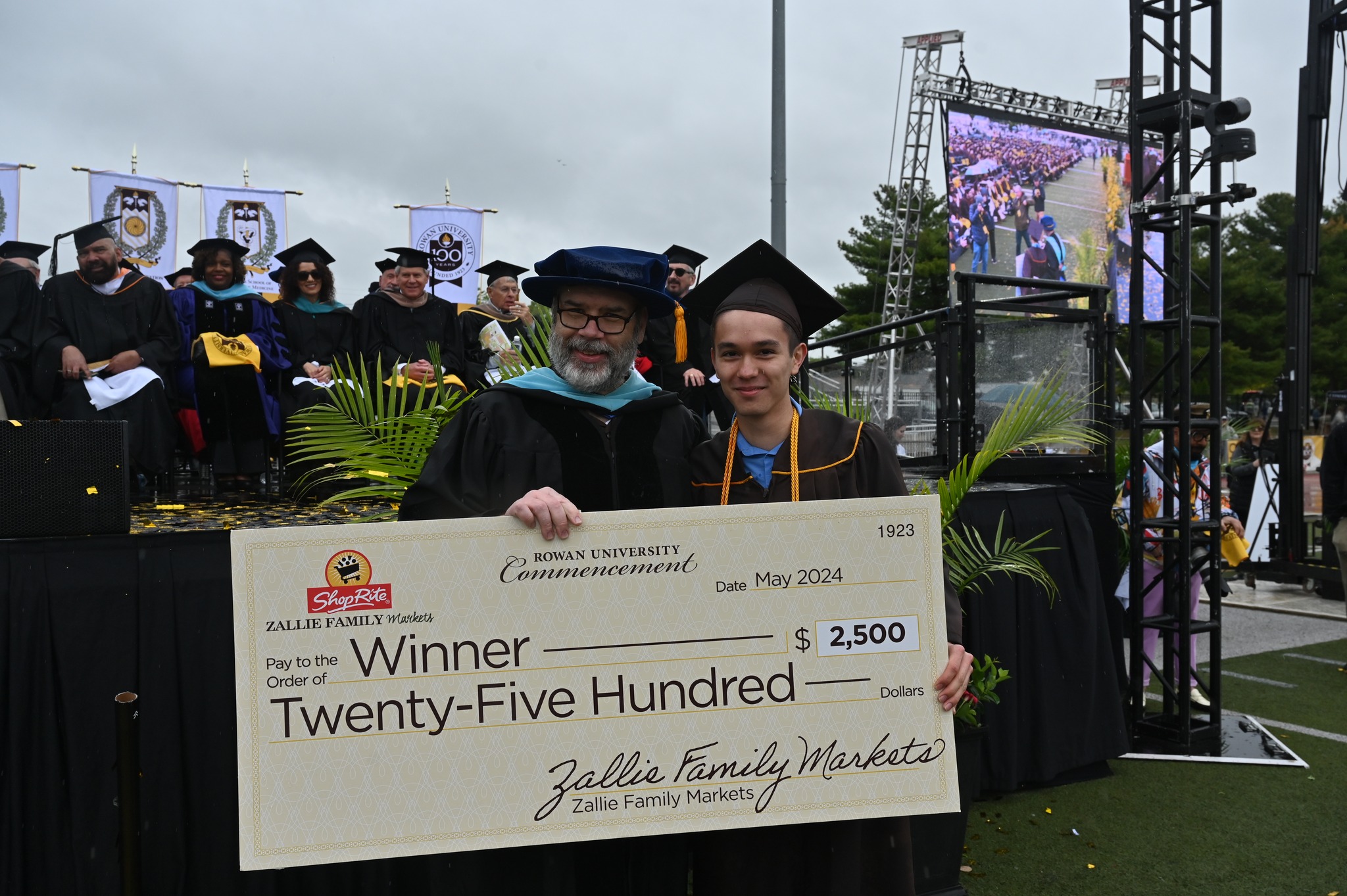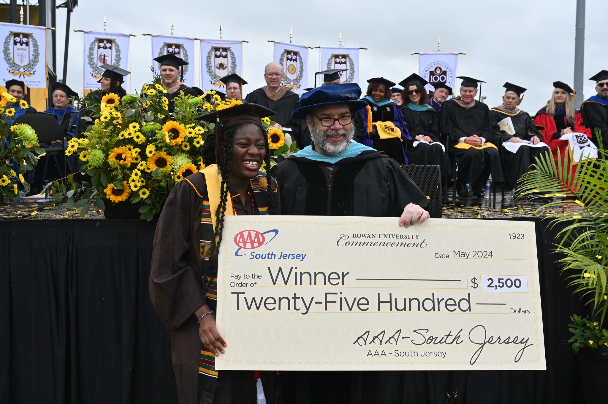 Our community partners at AAA South Jersey and Zallie’s Family Markets generously provided $2,500 each to graduating students Lois Ajayi [Law & Justice Studies] and William Truex [Electrical & Computer Engineering], and honorary degree recipient Joe Cosgrove and his wife, Milissa, provided two gifts of $2,500 each to Bryan Martin [Radio, Television & Film] and Joanne Ludwick Viscusi [Masters in Nursing].