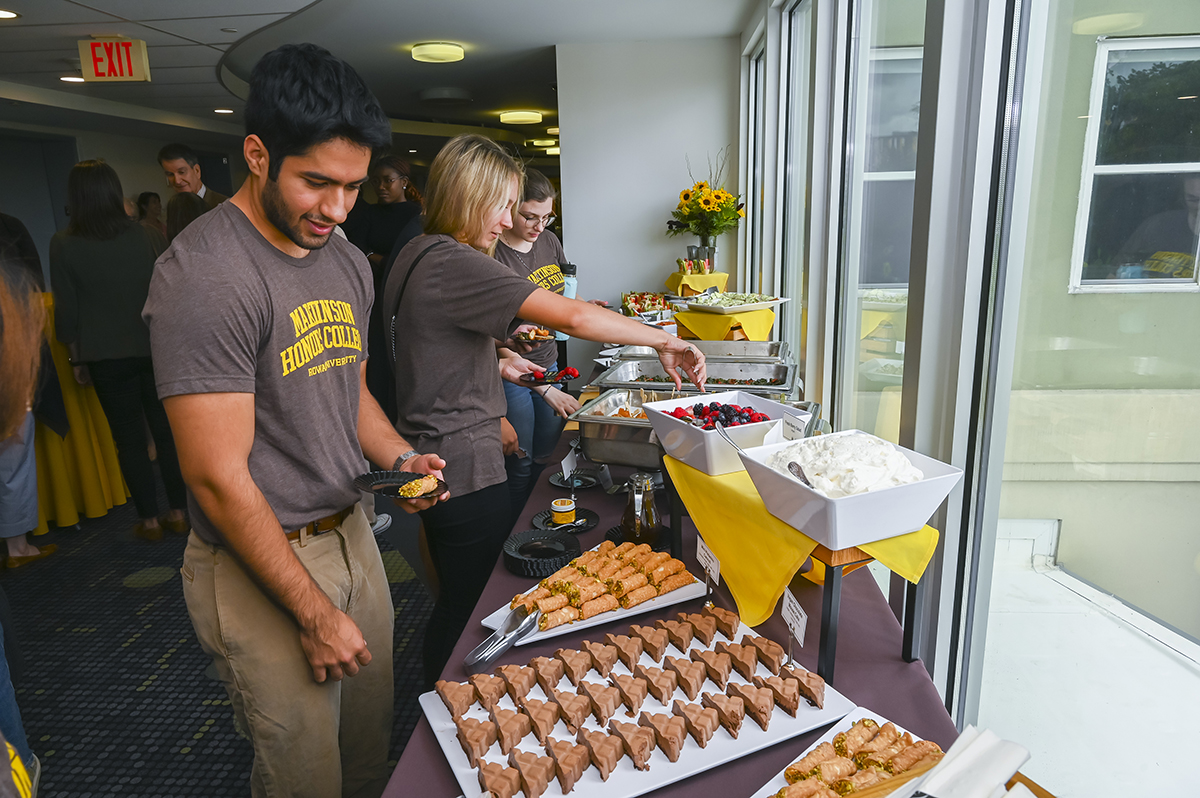 President Ali Houshmand and John H. Martinson Honors College Dean Lee Talley hosted a naming and plaque unveiling reception in September in honor of longtime donor and friend, John Martinson.