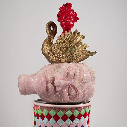 Devan Shimoyama is a visual artist who works primarily in painting and self-portraiture, with works inspired as much by classical mythology as by the culture of his youth. Through his depictions of the queer black male form, Shimoyama investigates the politics of queer culture while navigating his own personal narratives.