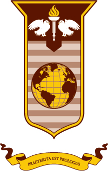 The elements that distinguish the School of Earth & Environment crest begin with the solid brown field at the top of the shield that descends into the shape of a spade, a basic tool of discovery in earth sciences. The striped field symbolizes the earth’s strata, each layer offering insight on the planet’s past, present and future. The globe illustration is situated on the crest to show the eastern U.S., where the world’s first nearly complete skeleton was found, as well as Argentina and Egypt, the sites of major dinosaur discoveries. The School’s motto, “Praeterita est prologus,” is drawn from Shakespeare, commentary applicable to all of life and this planet’s place in the universe: “What’s past is prologue.”