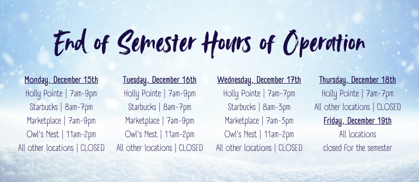 Students, faculty & staff are all welcome to join us in the Owl's Nest!