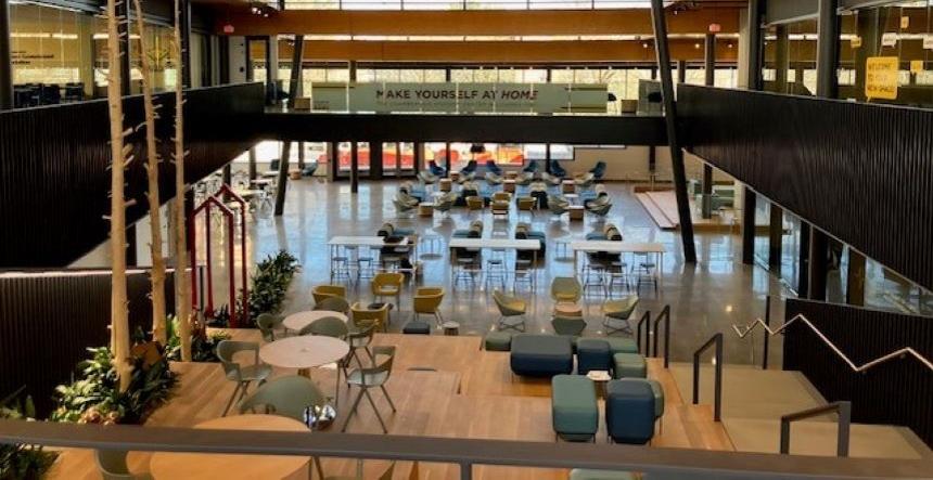 Campus celebrates $31.4M Student Center expansion. The new structure, which connects to the existing 135,000-square-foot Chamberlain Student Center, is modeled after a Greek “agora,” a central gathering place.