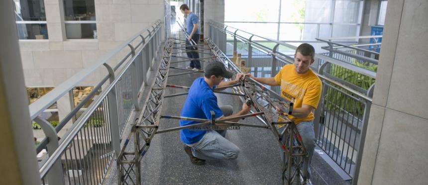 As members of the broadest of all engineering fields, mechanical engineers leave their fingerprints on practically everything people use. For example, consider the automobile: mechanical engineers study the aerodynamics to design the exterior, understand combustion and fluid mechanics to develop the engine systems, conduct simulations on vehicle dynamics to optimize the drive train, appreciate the material requirements to mass-produce a reliable vehicle and are keenly aware of potential dangers to design safety systems. Similarly, mechanical engineers affect design at every level of energy production systems, environmental control systems, industrial automation or robotics, transportation systems and biological systems. To prepare you for such a wide variety of applications we focus attention toward the key steps that make any product or a system successful. You will learn to base your design on engineering fundamentals, analyze your ideas using industry standard tools, build prototypes to appreciate the challenge of fabrication and finally test your designs for performance. This 'Design, Analyze, Build, and Test' philosophy will be the foundation of your career, making you well-suited for industrial jobs, governmental positions or as a student/researcher in graduate school.
