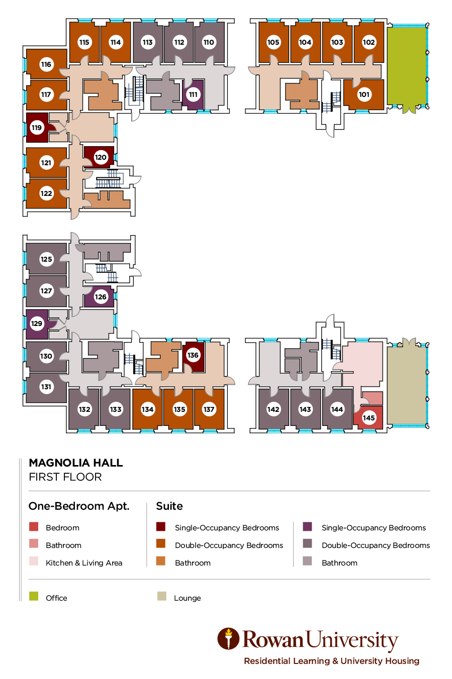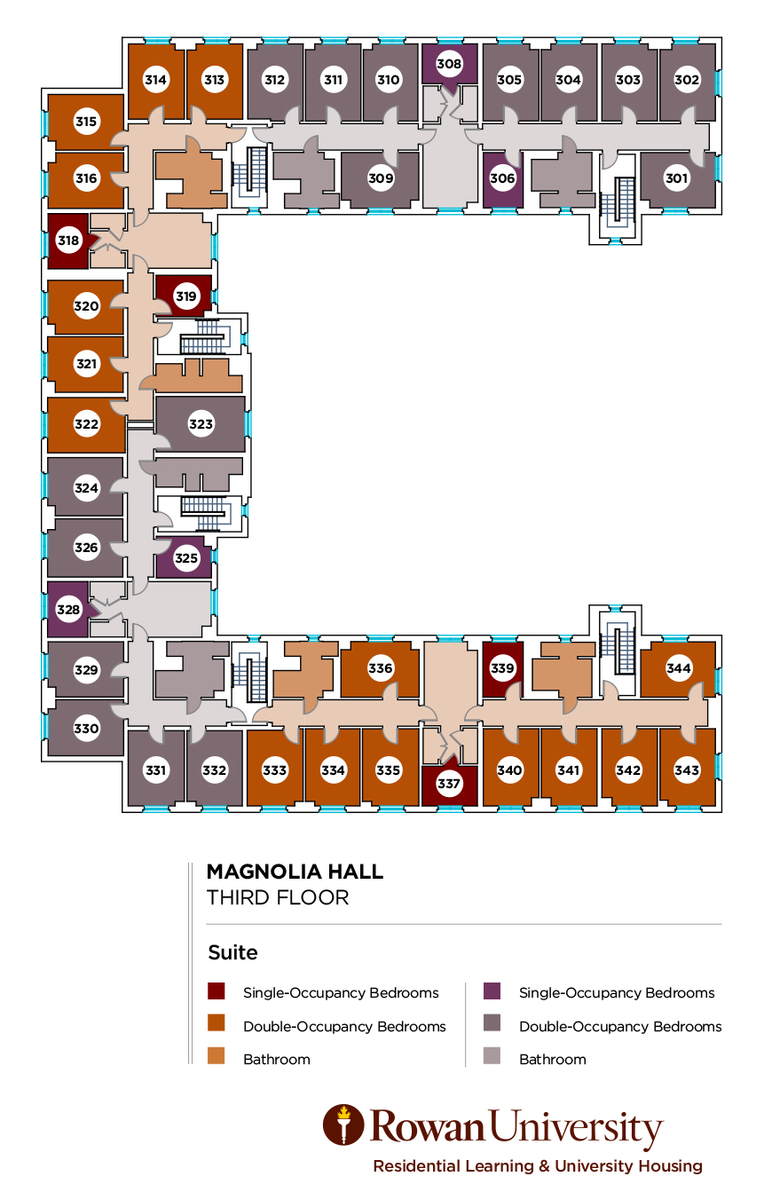 - Magnolia Hall has single and double-occupancy rooms located throughout the building, with the majority of the rooms assigned as doubles.