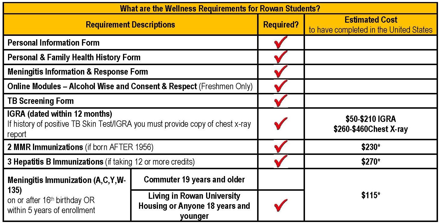 All international ELP students and ELP students living on campus must complete the Wellness Center Requirements. The below chart outlines the Wellness Requirements that must be completed and submitted to the Wellness Center. Please review the Wellness Center's website for a full list of requirements and instructions on how to submit your forms.