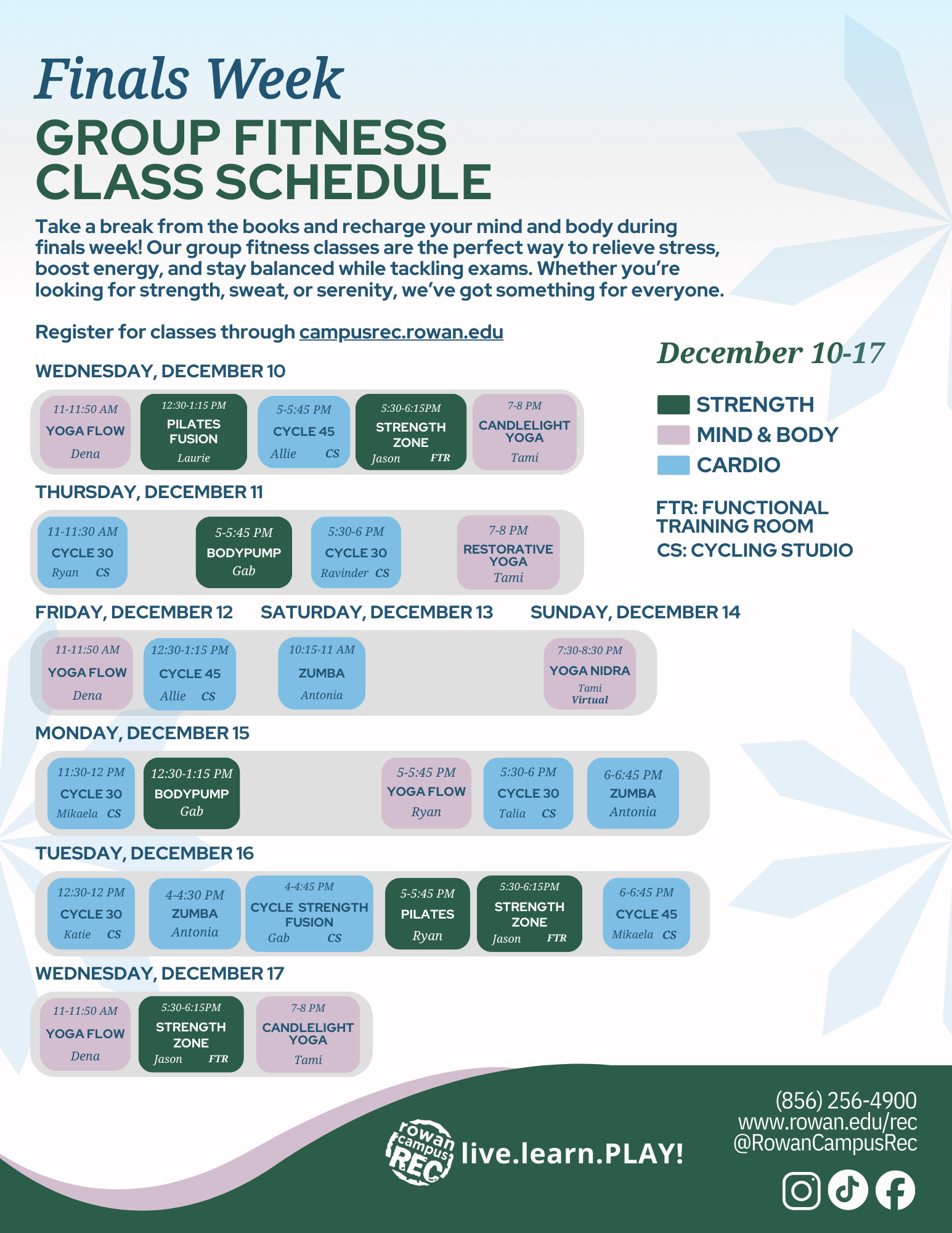 Finals Group Fitness Schedule: December 10 - December 17