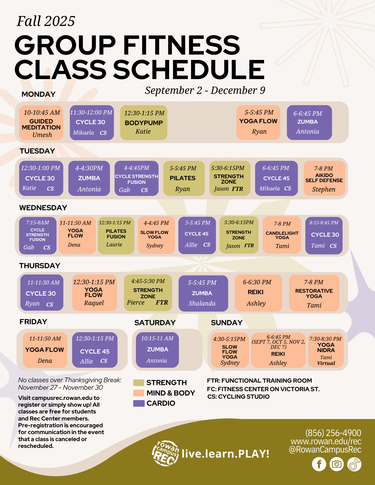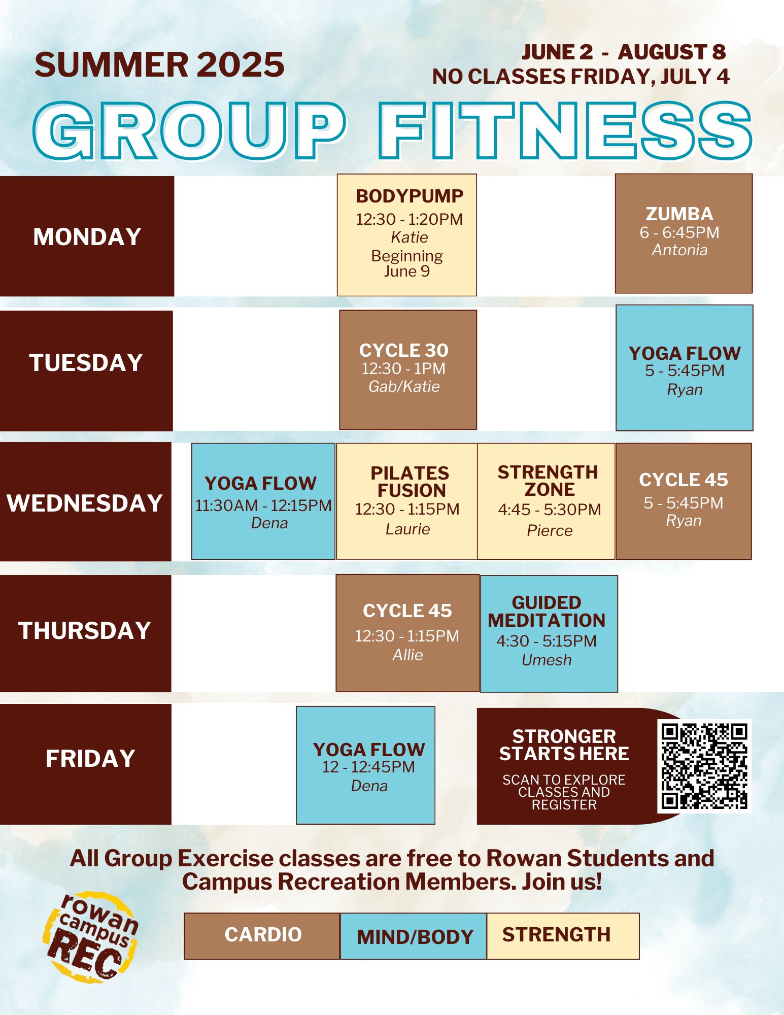 To register for a class, visit campusrec.rowan.edu
