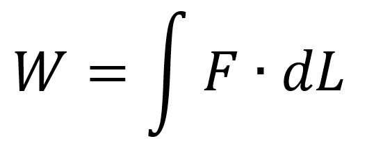 The work can also be calculated by direct measurement of the total force displayed and displacement of the actuator. This is shown below in equation 2, and if the force is constant, the equation can be simplified as shown in equation 3. For these equations, F is the force and L is the distance covered.